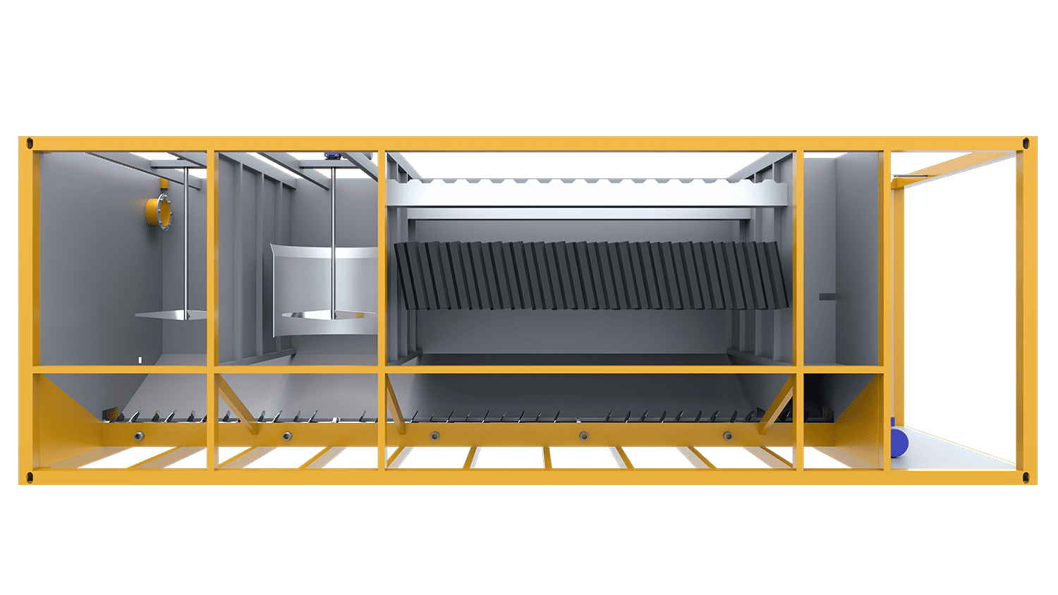 Su concepto tipo contenedor permite una operación rápida de transporte, descargue y ubicación, todos sus componentes son robustos y de fácil mantenimiento.