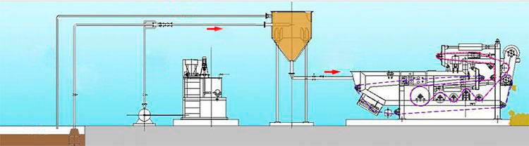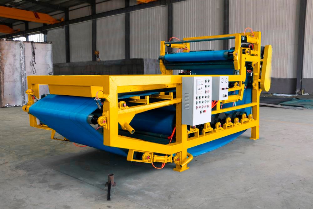 Las partículas pequeñas en los lodos se coagularán en floculantes de mayor tamaño después de que se proceda a mezclar los lodos concentrados y cierta concentración de floculantes. De esta manera los lodos floculantes serán llevados por filtro de banda, en este lugar el agua libre se separa bajo la acción de gravedad. Los lodos en el estado dinámico se encuentran sin salida (aprisionados) entre la parte superior e inferior de la banda. Para finalizar, los lodos son gradualmente presionados en las tortas de filtración para ser descargados, todo esto se da bajo la acción de fuerza de extrusión y la fuerza de corte en la zona precomprimida, la región de baja y alta presión.