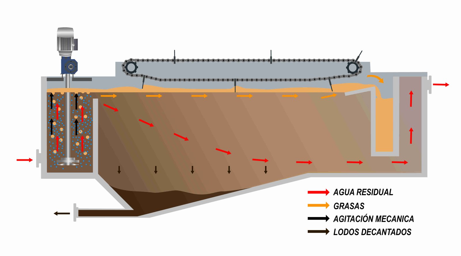 • Alta eficiencia en la remoción de sólidos, grasas y aceites.