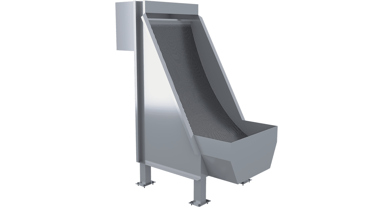 The static sieve is an apparatus for laminar sifting with high efficiency. It is designed to perform solid/liquid separation in all types of water: drinking, industrial and wastewater. The SCREEN comprises a frame body and a filter mesh. The water to be filtered strains through the openings, leaving the solids retained and separated in the filter mesh. The mesh of wavy laminar profiles performs two functions: distributing the raw water to be filtered over its width, and collecting that water through the interior area of the triangular profiles. There are three pending ramps: two for filtration and a last one for draining. The greatest filtration of raw water is achieved on the first ramp, following the filtration on the second ramp, and from there, on the third ramp, carry out the last draining of the solids retained by the static sieve.