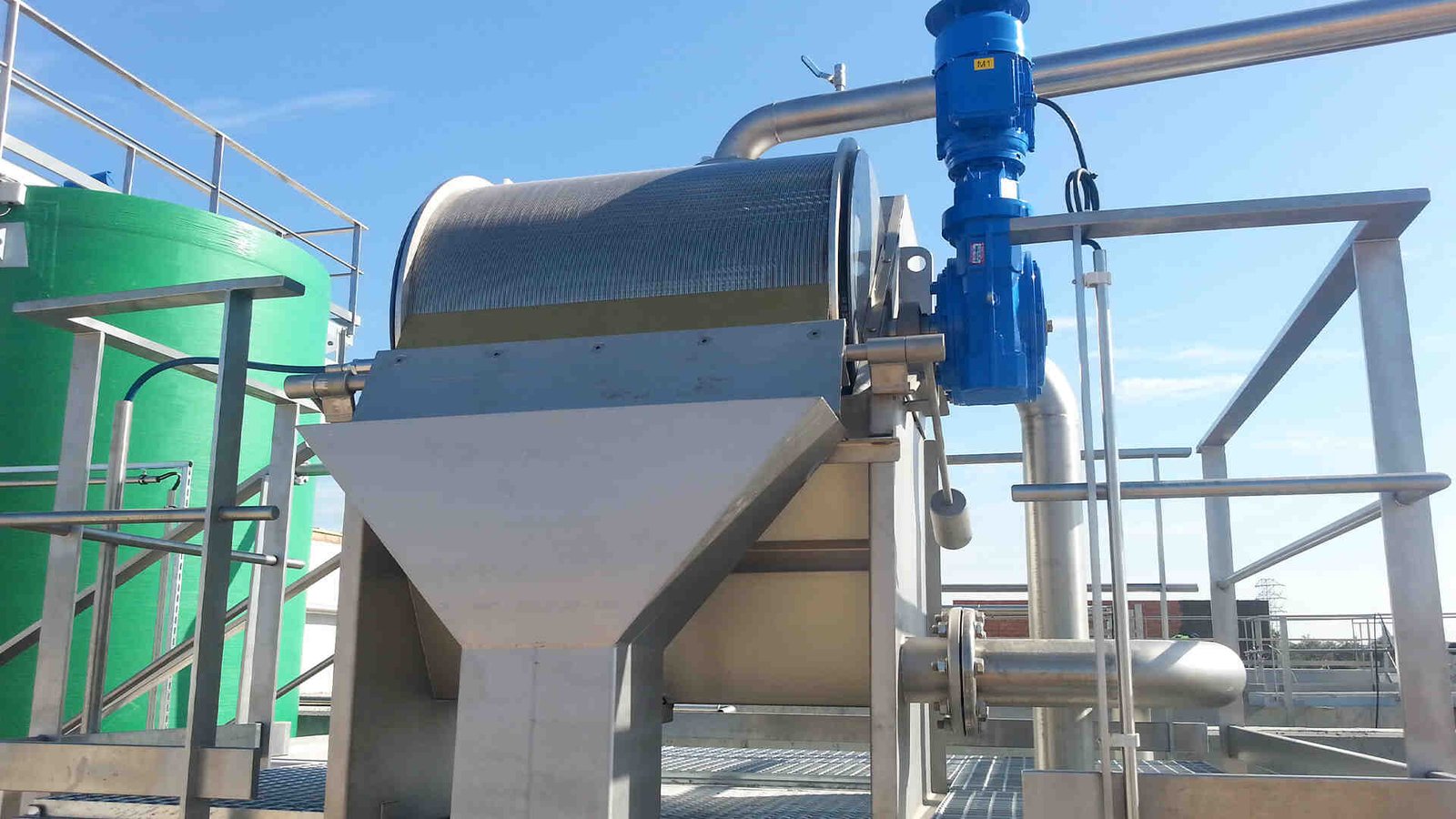El Tamiz rotativo es una equipo destinado a la filtración o Tamizado de líquidos en general, con luz de paso de 1mm, en las ejecuciones estándar, con el objeto de realizar una separación sólido-líquido para aguas residuales urbanas.