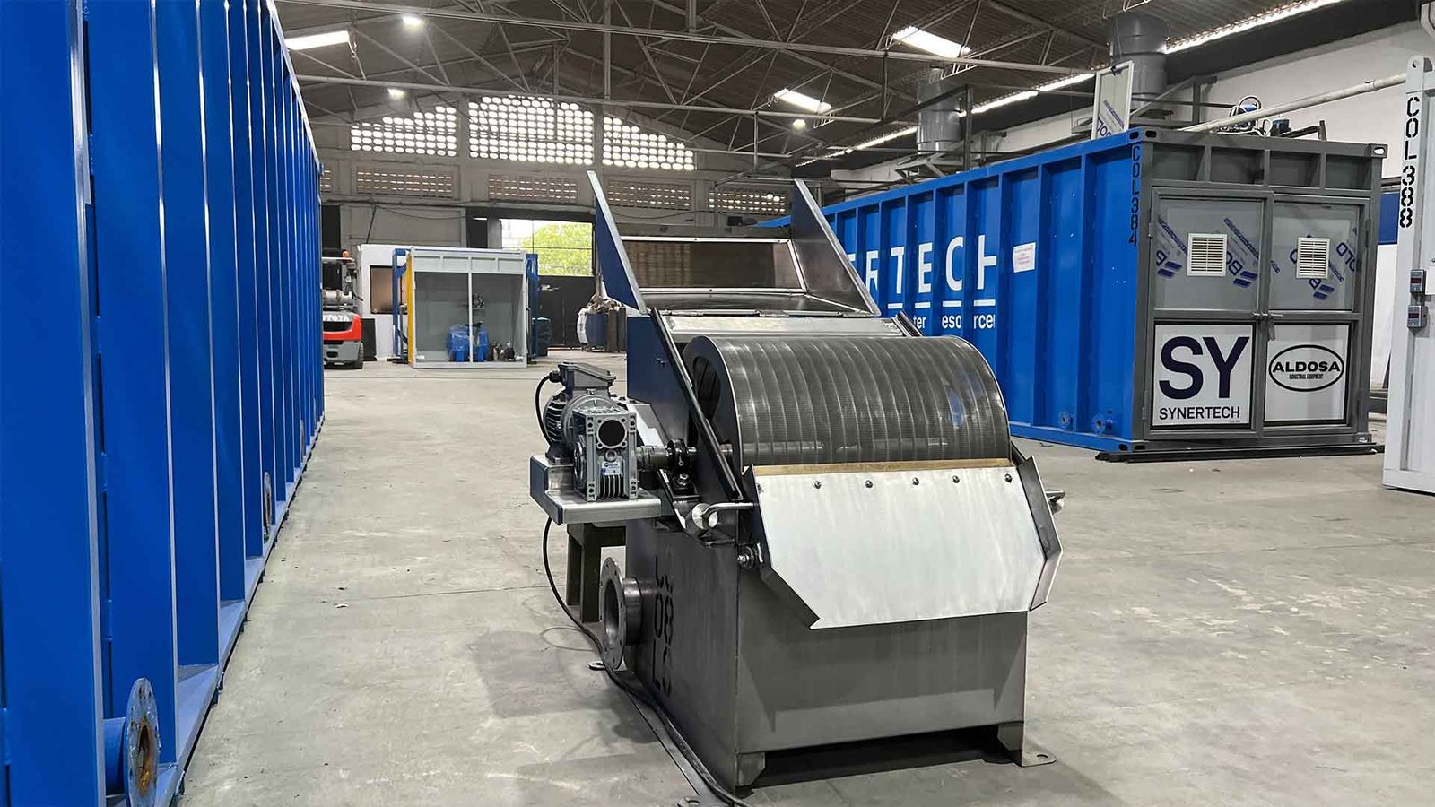 El Tamiz Rotativo Autolimpiante de Synertech es una solución de alta eficiencia para la separación continua de sólidos en suspensión presentes en aguas residuales industriales y municipales. Este equipo incorpora un sistema automático de limpieza que mantiene las superficies filtrantes operando a máxima capacidad, sin necesidad de paros ni mantenimiento frecuente. Diseñado en acero inoxidable, ofrece durabilidad, operación silenciosa y un desempeño confiable incluso en condiciones exigentes. Su estructura compacta y su bajo consumo energético lo convierten en una opción ideal para procesos que requieren alta eficiencia con mínima intervención operativa. Perfecto para industrias alimentarias, farmacéuticas, petroquímicas, textiles y plantas de tratamiento de aguas, el Tamiz Rotativo Autolimpiante permite reducir costos, recuperar materiales y optimizar el pretratamiento del agua.
