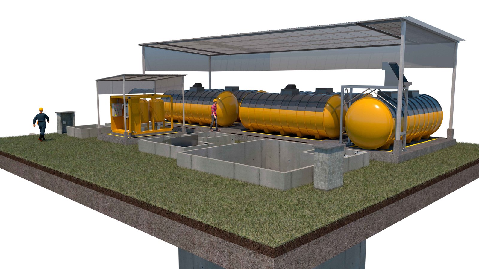 Phase 9: Construction of the distributor tank This is usually built on top of the leachate tank. Its objective is to remove the pressure from the water and distribute it among the reactors.