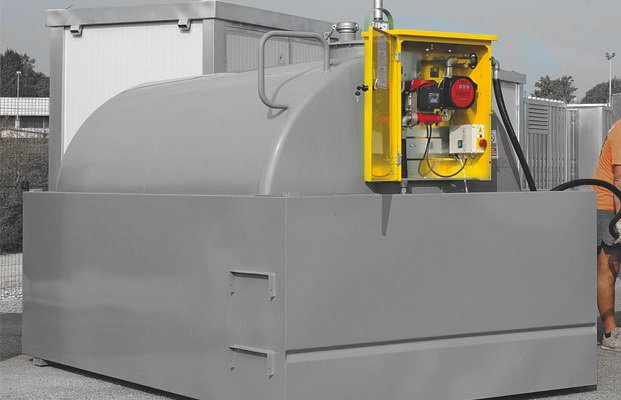 Synertech puede construir todo tipo de tanques para almacenamiento combustibles verticales en acero, estos tanques cuentan con un dique de contensión en acero al carbono S 235 JR UNI EN 10025 con bastidor de fondo autoportante ya preparado para la fijación, mediante pernos, en los pies del tanque; adecuada para ser instalada en cualquier terreno (incluso para un montaje permanente). Realizada con una capacidad equivalente al 100% del volumen nominal del tanque. Disponen de placas de elevación, conexión de puesta a tierra y manguito con tapón de descarga; 4 alojamientos idóneos para el montaje y la fijación de los montantes del techo.Están tratadas completamente con una capa anticorrosiva y con una capa de esmalte de acabado. A partir de la versión de 5.000 l y superiores, se prevén escalones antideslizamiento y plano de apoyo de chapa lacrimada con pasamanos de seguridad para facilitar el paso al pozo de registro.