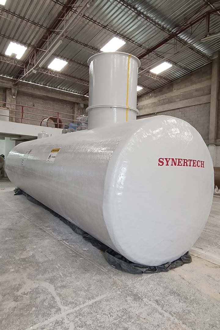 Synertech ofrece tanques de poliéster reforzado con fibra de vidrio (PRFV) de Doble pared construidos bajo normas internacionales que garantizan total seguridad y confianza en materiales, instalación y almacenamiento de líquidos en el largo plazo. Estos tanques se pueden aplicar en: Productos petroleros, Gasolinas, Combustible de aviación, AV-gas, Aceite de motores, Kerosén, Combustible Diesel, Mezclas de etanol y/o metanol, Combustibles de motor 100% oxigenados, etc.